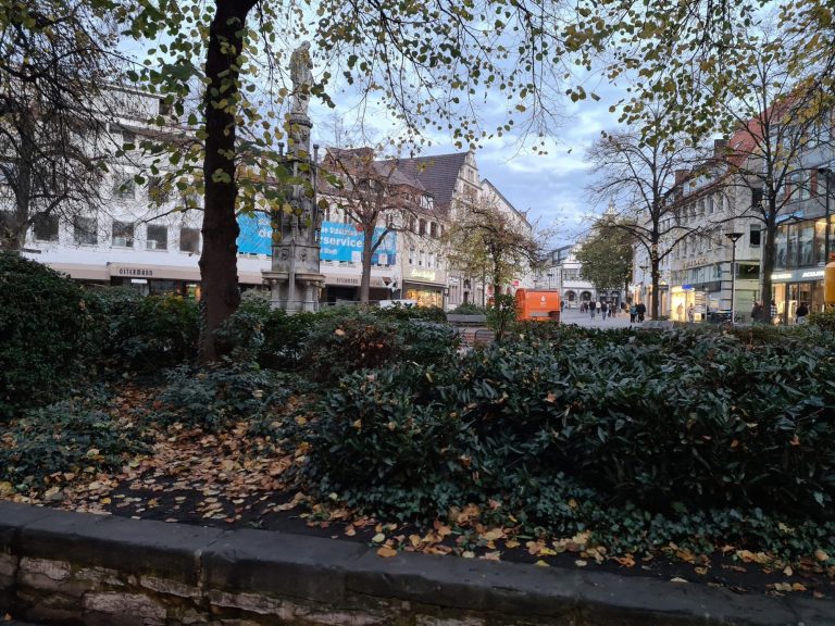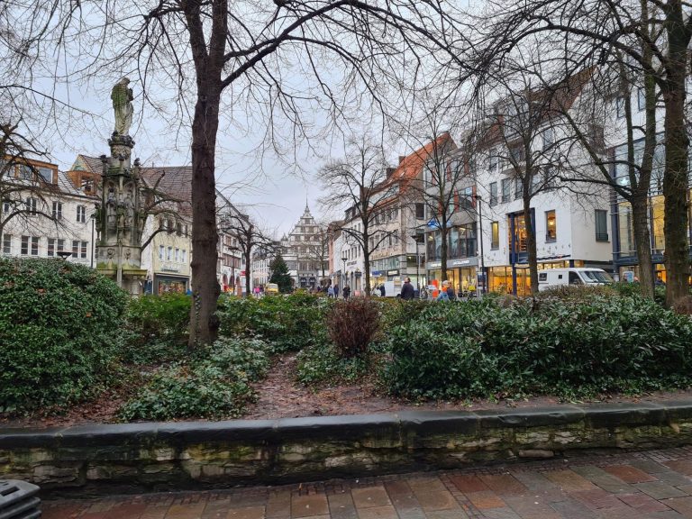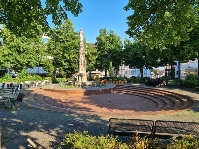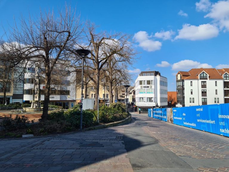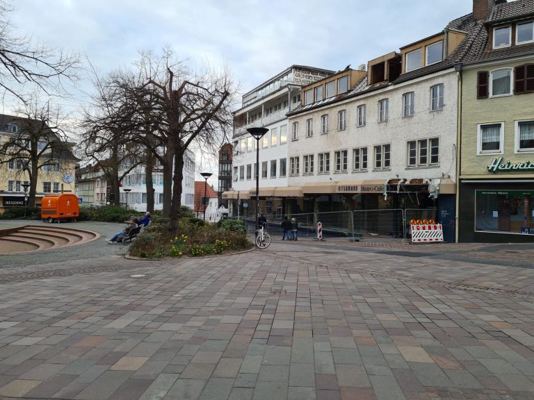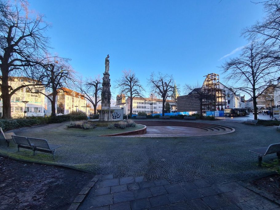 Paderborn, Marienplatz, nun ohne Kandelaber und Metallzaun.