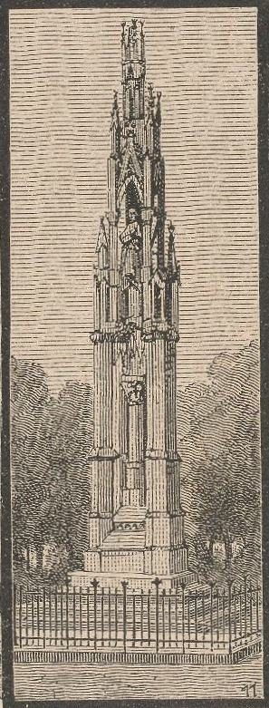 Die ursprüngliche Mariensäule, hier nun mit dem späteren Metallzaun, nach einem Holzstich von Carl Grote