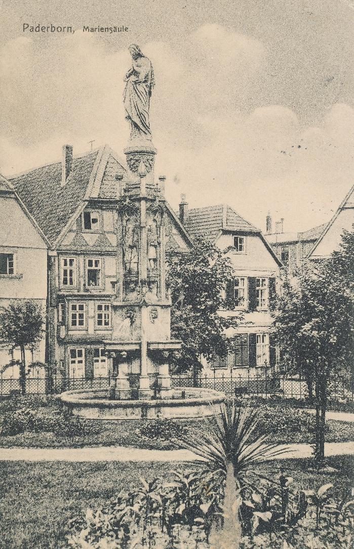 Die älteste bislang bekannte fotografische Stadtansicht Paderborns zeigt die ursprüngliche Mariensäule im Herbst/Winter 1862/1863 mit provisorischem Holzzaun, der später (frühestens nach November 1862) durch ein Eisengitter ersetzt wurde (die Einweihung erfolgte am 8. Dezember 1861), mit dem Daltrop'schen Hof im Hintergrund