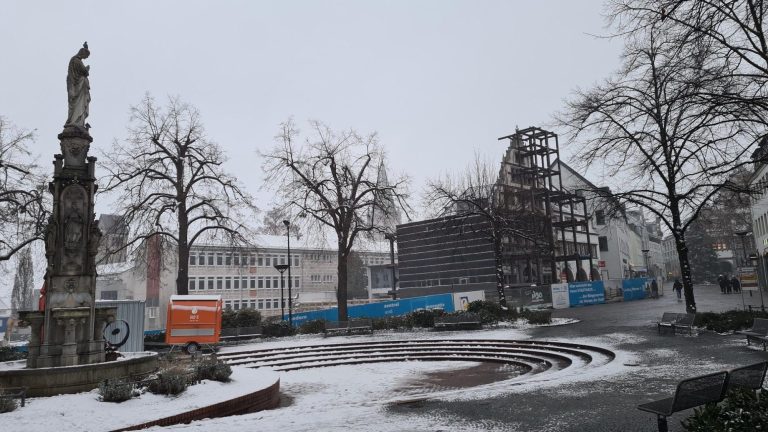 Links: Paderborn, Marienplatz, mit Blick auf die neu geschaffene Marienstraße.