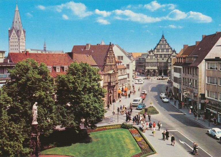 Der Marienplatz in Paderborn, bis 1904 der Kettenplatz, im Wandel der Zeit