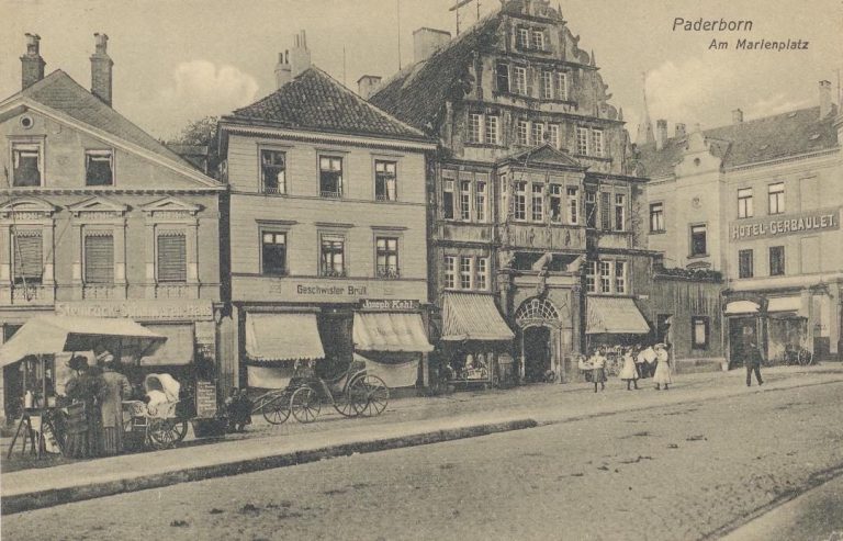Paderborn, Marienplatz Nr. 12 und 14, mit dem Marienplatz, 1902,