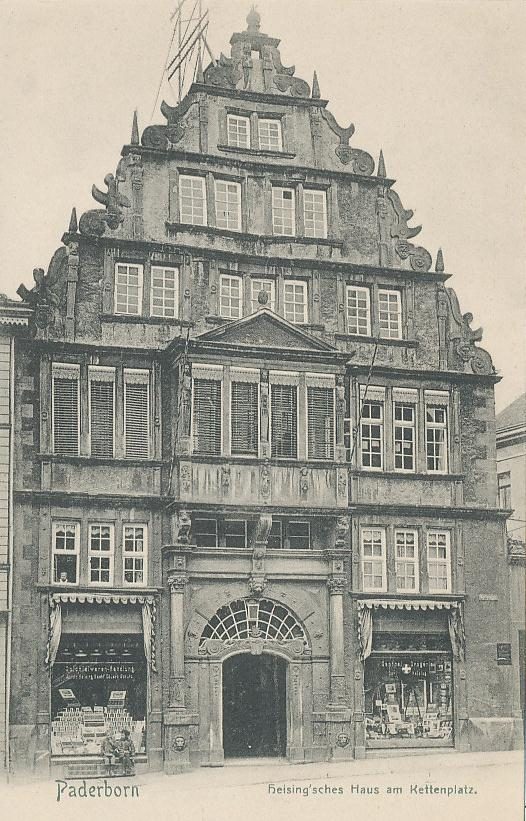 Auf der Ansicht rechts ist rechts neben Haus Heising nun die am 30.09.1928 eingeweihte Stadtsparkasse, Marienplatz 2 a, zu sehen.