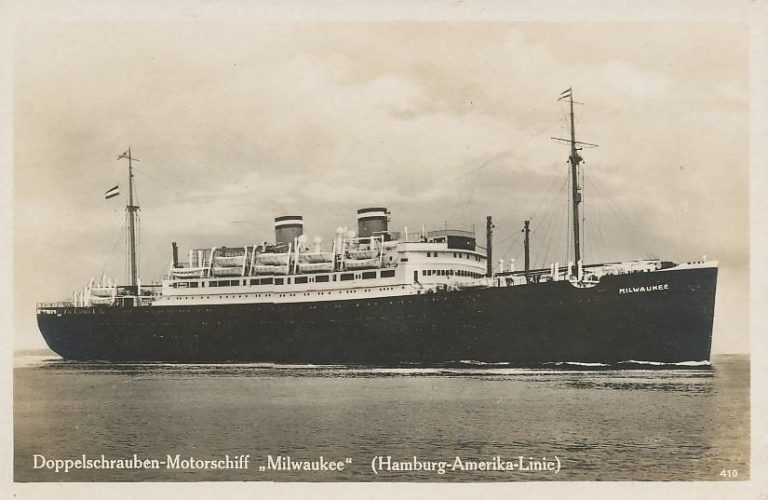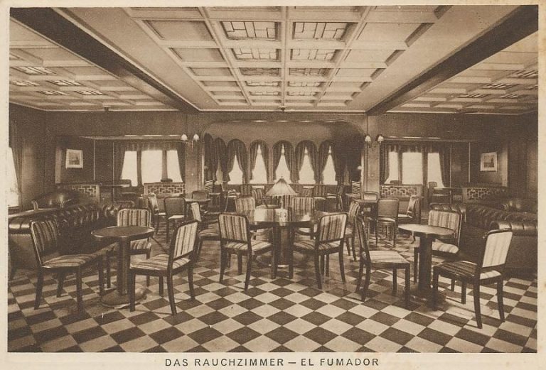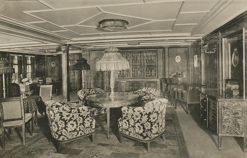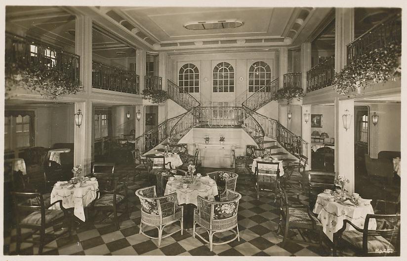 Der HAPAG-Dampfer HAMBURG (1926), dessen Ausbauten nicht unwesentlich durch die Werkstätten Bernard Stadler ausgeführt worden sind.