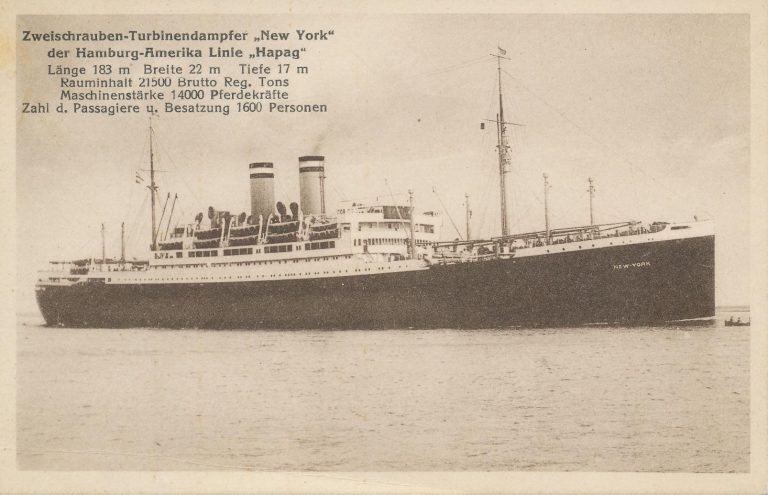 Der HAPAG-Dampfer NEW YORK (1927), dessen Ausbauten nicht unwesentlich durch die Werkstätten Bernard Stadler ausgeführt worden sind.