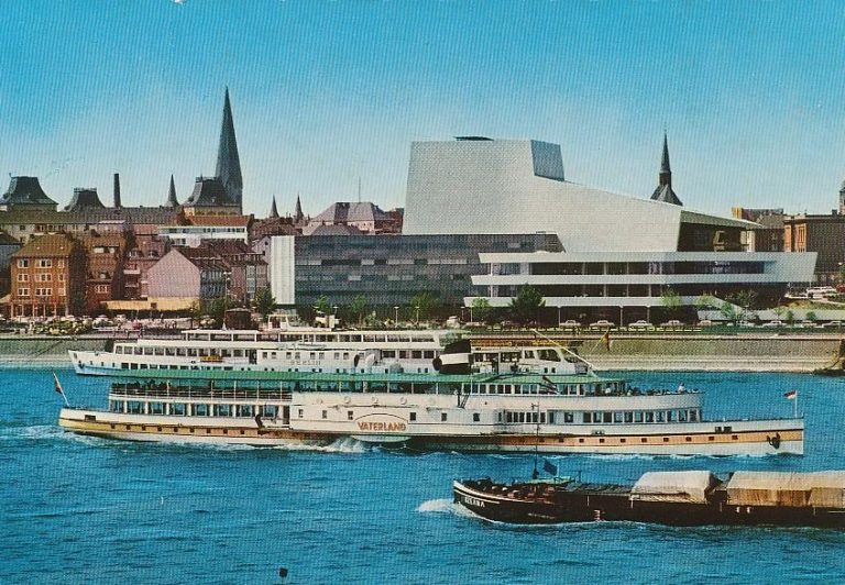 Rheindampfer VATERLAND (1926) vor dem Stadttheater in Bonn.